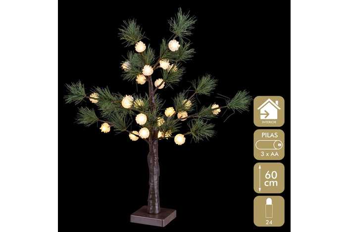ÁRBOL PINO 24 LUCES PIÑAS PLÁSTICO 60 CM
