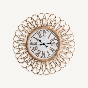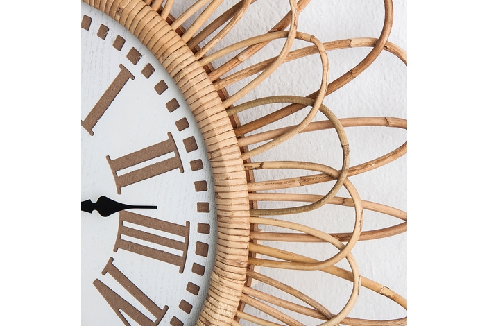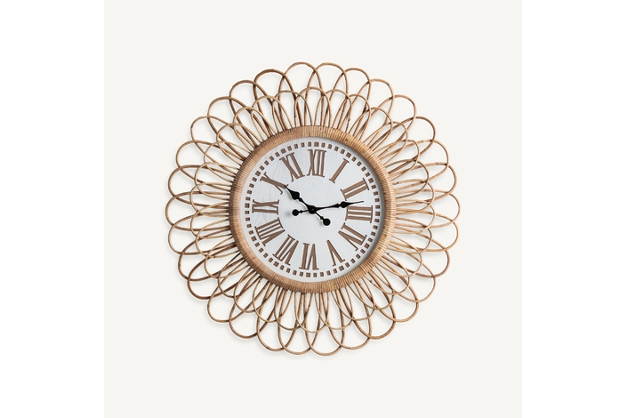 Reloj redondo ghiare, en color natural, de estilo contemporáneo. Fabricado en ratán, combinado con madera dm.