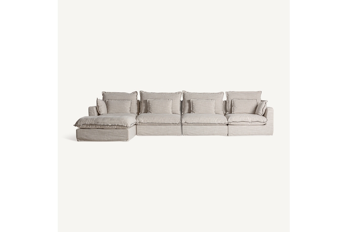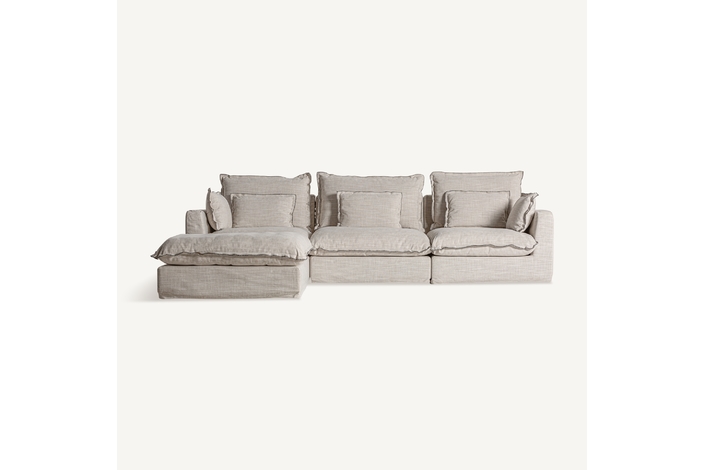 Reposapiés bief, en color blanco roto, de estilo clásico. Fabricado en poliéster. Relleno: 65% espuma, 20% fibra, 10% pluma de pato, 5% entretela. Producto desmontable, desenfundable. Compatible con: 35595,35596,35594.