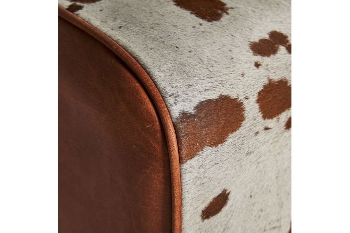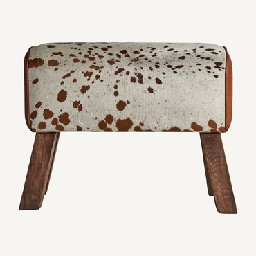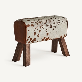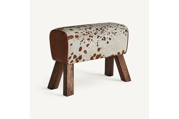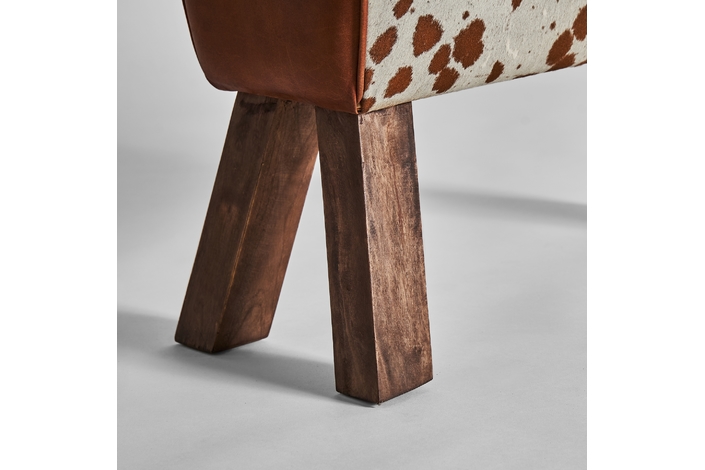 Reposapiés dallas, en color marrón, de estilo nórdico. Fabricado en madera de mango, combinado con piel y espuma.