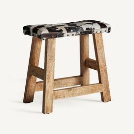 Reposapiés midway, en color marrón, de estilo nórdico. Fabricado en madera de mango, combinado con piel y espuma.