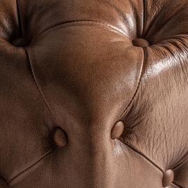 Reposapiés vinstra, en color marrón, de estilo vintage. Fabricado en piel, combinado con espuma.