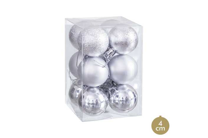 S/12 BOLA DECORACIÓN PLATA 4 X 4 X 4 CM