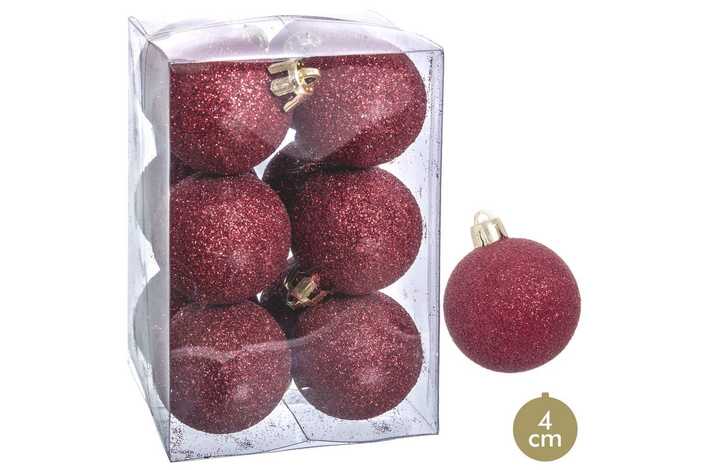 S/12 BOLAS PURPURINA PLÁSTICO ROJO 4 X 4 X 4 CM