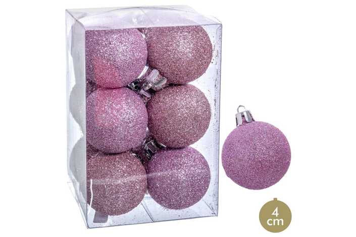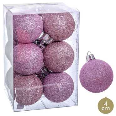 S/12 BOLAS PURPURINA PLÁSTICO ROSA 4 X 4 X 4 CM