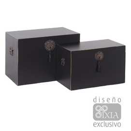 S/2 BAÚLES NEGRO MADERA ''ORIENTE'' 60 X 40 X 42 CM