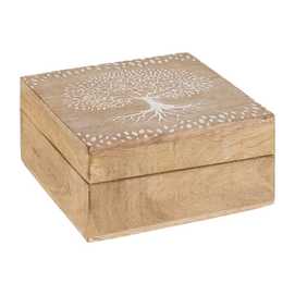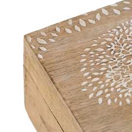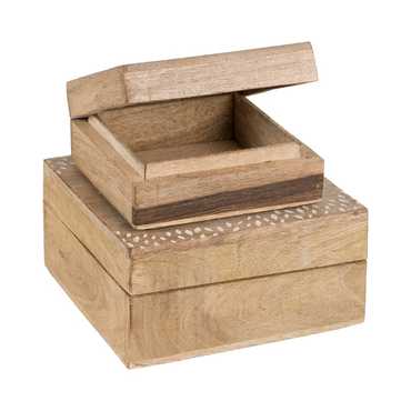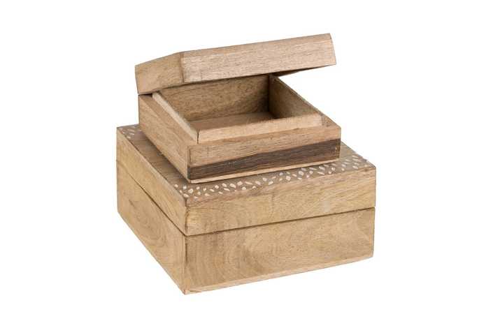 MATERIAL: MADERA DE MANGO MEDIDAS CAJA GRANDE:18X18X9CM. MEDIDAS CAJA PEQUEÑA:14X14X7CM