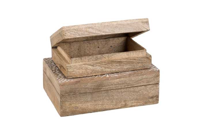 MATERIAL: MADERA DE MANGO MEDIDAS CAJA GRANDE:25X18X9CM. MEDIDAS CAJA PEQUEÑA:21,5X14X7CM