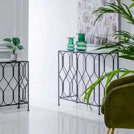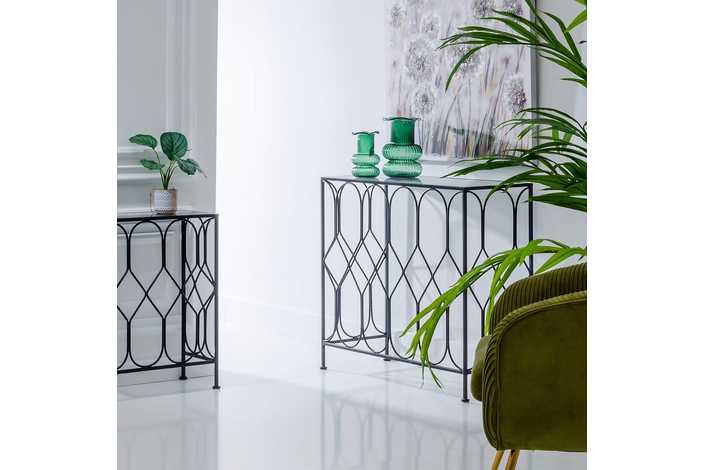 Material: hierro - cristal color gris 90x35x80 - 80x25.5x68cm.
