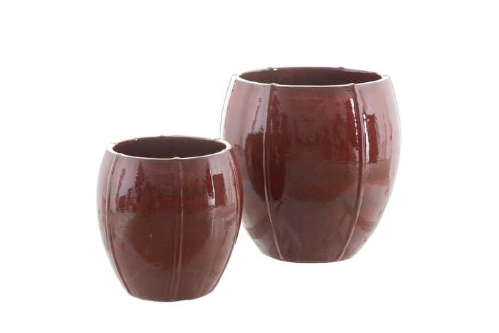 S/2 MACETEROS ROJO CERÁMICA DECORACIÓN 55 X 55 X 55 CM