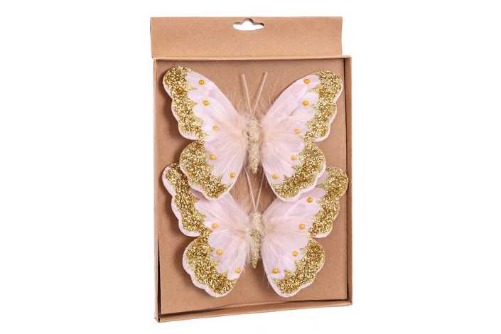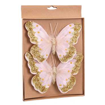 S/2 MARIPOSA CON CLIP ROSA-ORO 18 CM