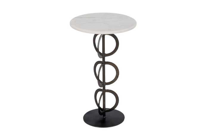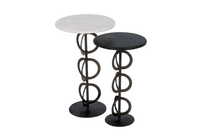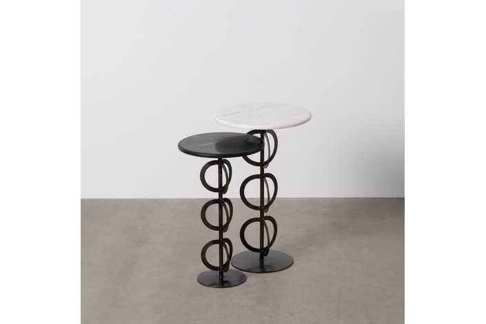 Material: mármol, hierro. Medidas: 38x38x63xm - 33x33x56cm. El mármol es un material natural que puede tener variaciones en su aspecto.