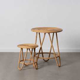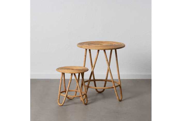 Material: ratán. Medidas: 60x60x69cm - 39x39x43cm.