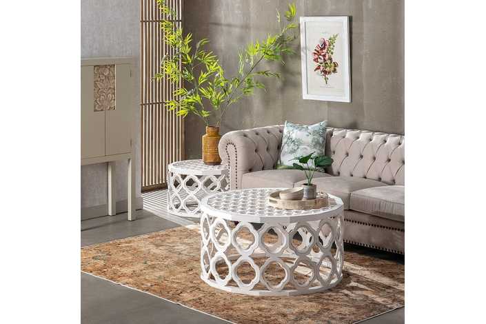 S/2 MESA CENTRO BLANCO DM SALÓN 89 X 89 X 47 CM