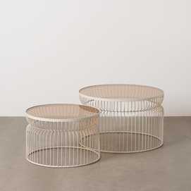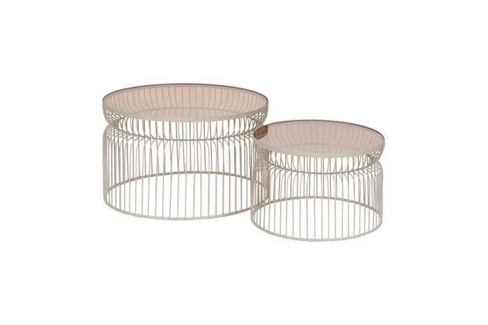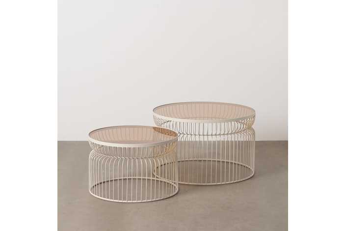 S/2 MESA CENTRO CREMA METAL-CRISTAL 65 X 65 X 40 CM