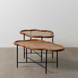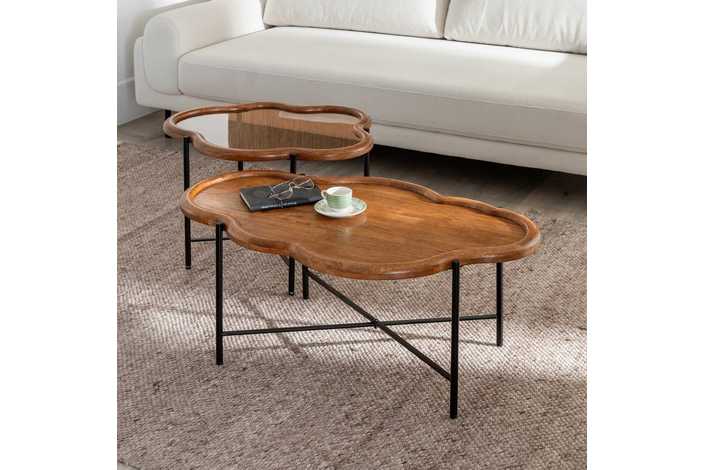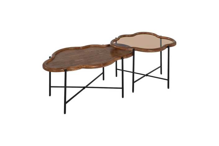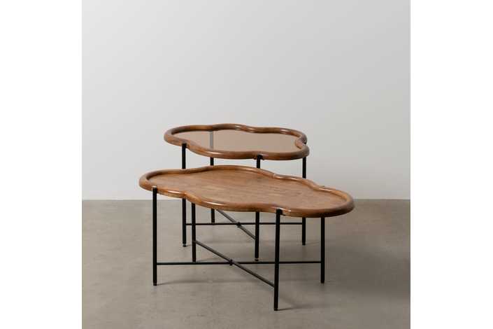 S/2 MESA CENTRO NATURAL MADERA / CRISTAL 89 X 50 X 40 CM