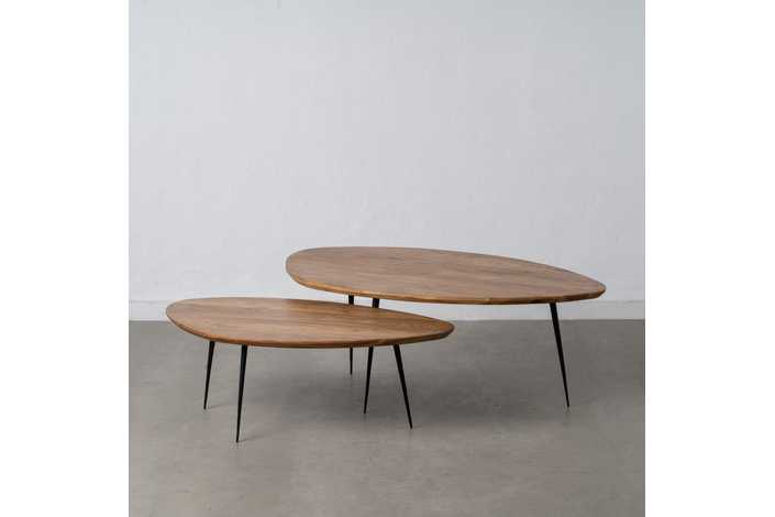 S/2 MESA CENTRO NATURAL MADERA-METAL 110 X 63 X 40 CM