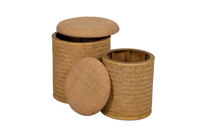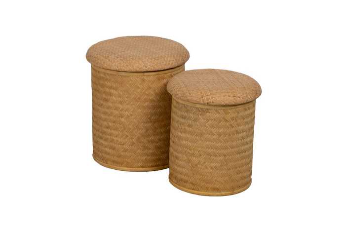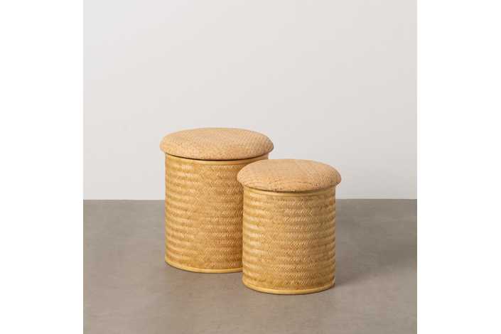 Puf para almacenaje. Material: ratán. Medidas: 40x40x46cm - 35x35x40,5cm.
