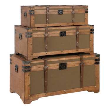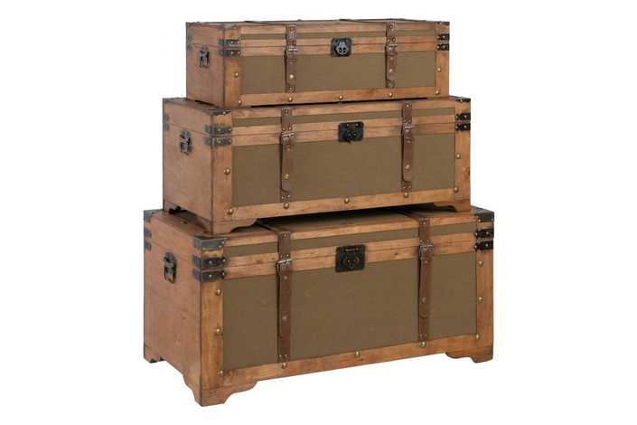 Material: Madera de álamo - tejido 100% poliéster. Medidas: 90X47X45 - 80X40X34 - 70x30.5x43cm. Medidas interiores: 87x43.5x38 -77.5x37x27 -67.5x27.5x20cm