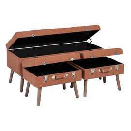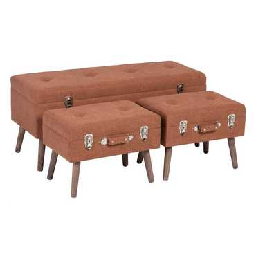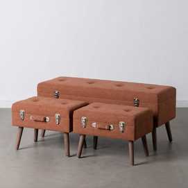105x38x46 - 2 de 50x33x38cm. Tejido 97% poliéster - 3% nilón. Gramaje tejido: 340g/m2. Estructura: Dm - patas madera de pino. Altura pata: 18cm. Hueco tamaño grande: 103x35x17cm. Hueco tamaño pequeño: 47x30x10cm. Relleno: foam Patas para montar. Peso máximo soportado: 150kgr. (por unidad)