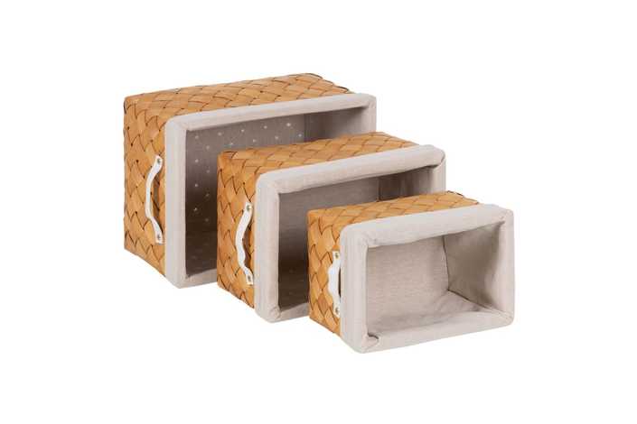S/3 CESTAS NATURAL TEJIDO-MADERA 39,50 X 30 X 24 CM
