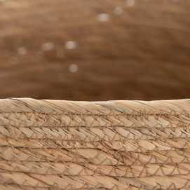 Material: fibra de junco y hoja de maíz. Medidas: 33x33x38cm - 28x28x32cm - 23x23x26cm.