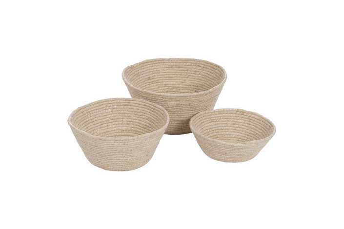 Material: fibra de junco y hoja de maíz. 30x30x15-26x26x13-22x22x9cm.