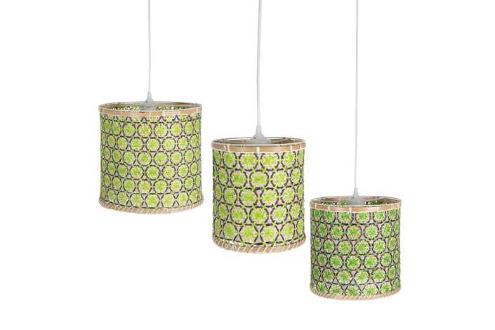 32x32x29 - 27x27x26 - 22x22x23cm. Material: bambú. Voltaje: 220v Casquillo: E27. Largo cable: 88cm. Bombilla: 1x40W máx. (no incluida) Cable blanco