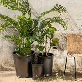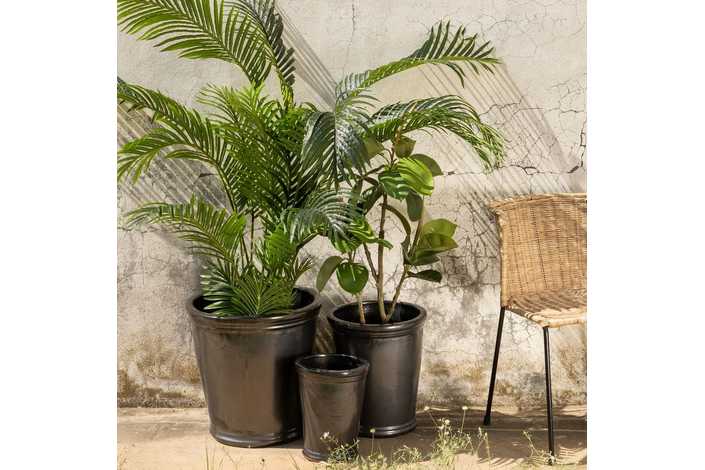 Medidas: 46x46x47cm - 35x35x41cm - 25x25x30cm. Uso interior y exterior. Con orificio para drenaje.