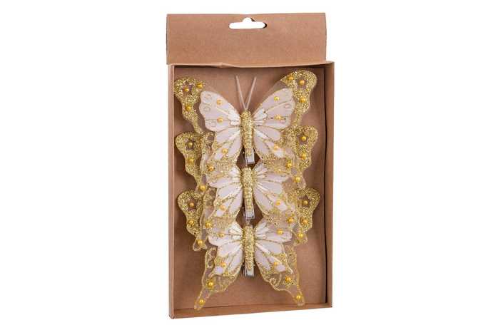 S/3 MARIPOSA CON CLIP ORO 12 CM