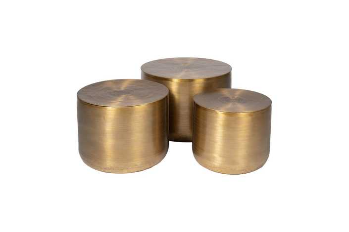 Material: aluminio. Medidas: 43x43x36,8cm - 50,8x50,8x39,4cm - 58,5x58,5x41,9cm. Aptos para almacenaje.
