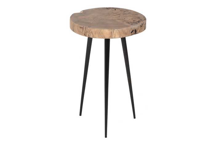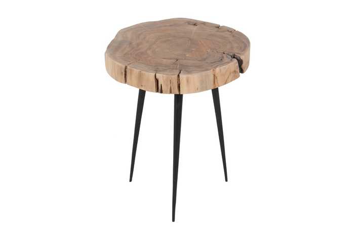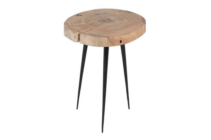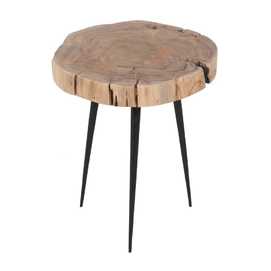 Material: Madera de acacia y hierro. Set de 3 mesitas: Mesita grande: 40x38x62.3cm Grosor del tablero:5.5cm Mesita mediana:40x35x51cm Grosor del tablero:5.3cm Mesita pequeña:39x35x41cm Grosor del tablero:5.3cm