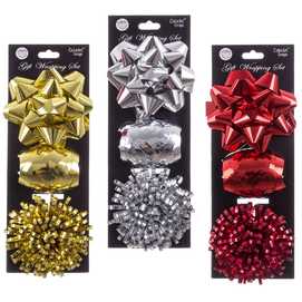 S/3 SET LAZO, CINTA, POMPÓN BRILLO 3/C 11 X 11 CM