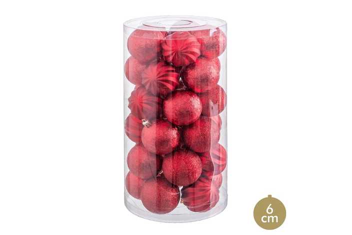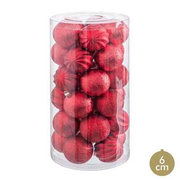 S/30 BOLAS MATE-BRILLO-GLITTER ROJO 6 X 6 X 6 CM