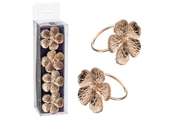 S/4 SERVILLETERO FLOR PLÁSTICO ORO 4 CM