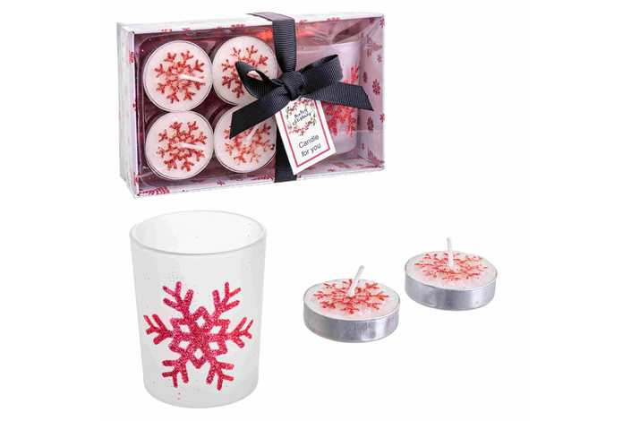 S/4 VELA TEALIGHT ROJO METÁLICO NAVIDAD 14,70 X 9 X 5,50 CM