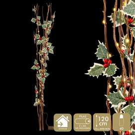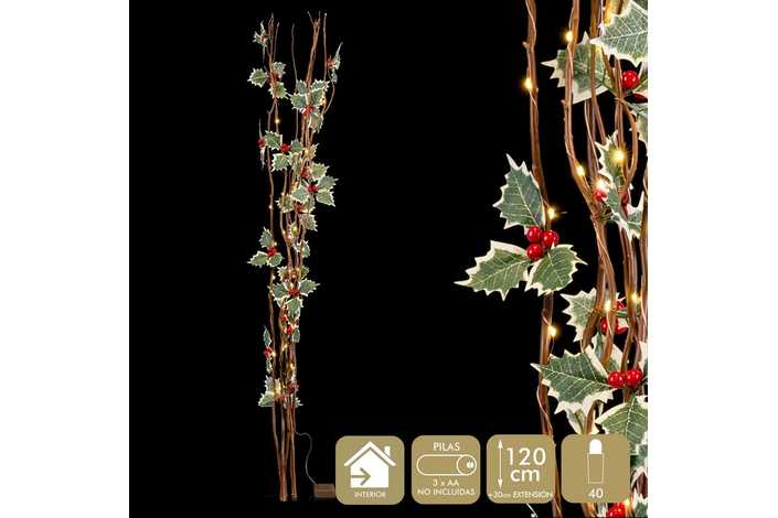 S/5 RAMA ACEBO Y HOJAS 40 LUCES PLÁSTICO 120 CM