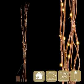 FUNCIONA A PILAS: 3 X AA (NO INCLUIDAS). IP20 (SOLO USO INTERIOR) CABLE DE COLOR MARRÓN 40 LEDS DE LUZ CÁLIDA EXTENSIÓN DE CABLE: 30 CM. ESTE PRODUCTO NO TIENE LA FUNCIÓN DE TEMPORIZADOR. PRESENTACIÓN EN CAJA DE PVC Y ETIQUETA DE COLOR.