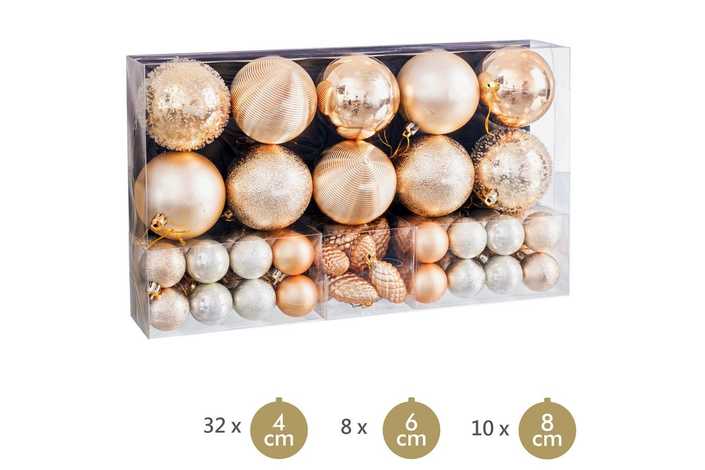 EN CAJA DE PVC.10 PIEZAS DE 8 CM.32 PIEZAS DE 4 CM.8 PIEZASDE PIÑAS DE 6 CM.