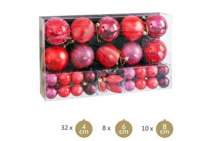 EN CAJA DE PVC.10 PIEZAS DE 8 CM.32 PIEZAS DE 4 CM.8 PIEZASDE PIÑAS DE 6 CM.