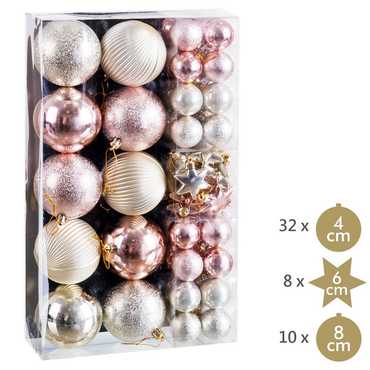 EN CAJA DE PVC.10 PIEZAS DE 8 CM.32 PIEZAS DE 4 CM.8 PIEZASDE ESTRELLAS DE 6 CM.