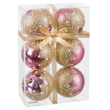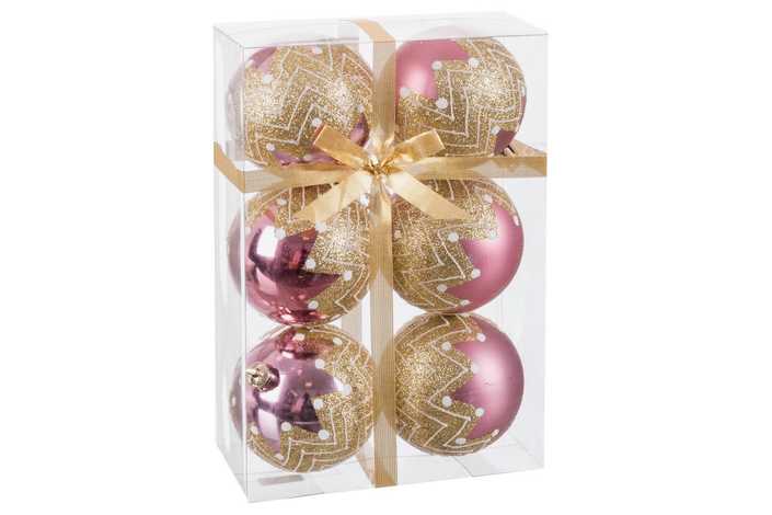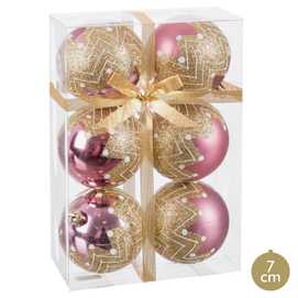 S/6 BOLA DECORADA ROSA 7 X 7 X 7 CM