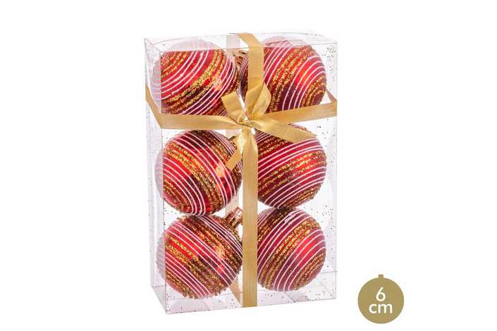 S/6 BOLAS ESPIRAL ROJO 6 X 6 X 6 CM
