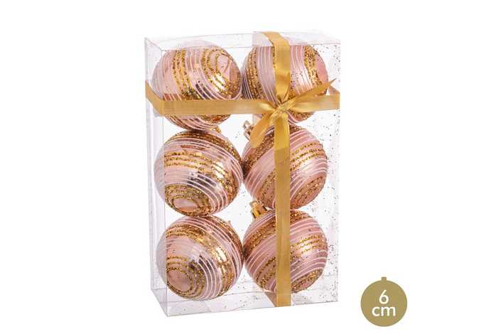 S/6 BOLAS ESPIRAL ROSA 6 X 6 X 6 CM