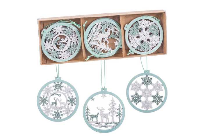 S/6 COLGANTE MADERA VERDE 3/M 8 CM