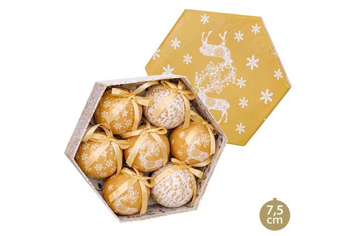 S/7 BOLAS MEMORY CIERVOS ORO 7,50 X 7,50 X 7,50 CM