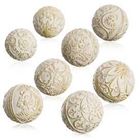 S/8 BOLAS BLANCO-ORO RESINA DECORACIÓN 10 X 10 X 10 CM