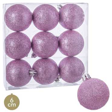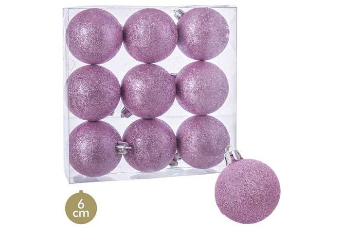 S/9 BOLAS PURPURINA PLÁSTICO ROSA 6 X 6 X 6 CM