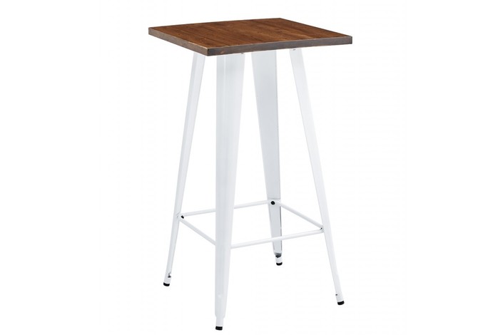 Mesa TOL EK WOOD, alta, acero, madera, blanca, 60x60 cms