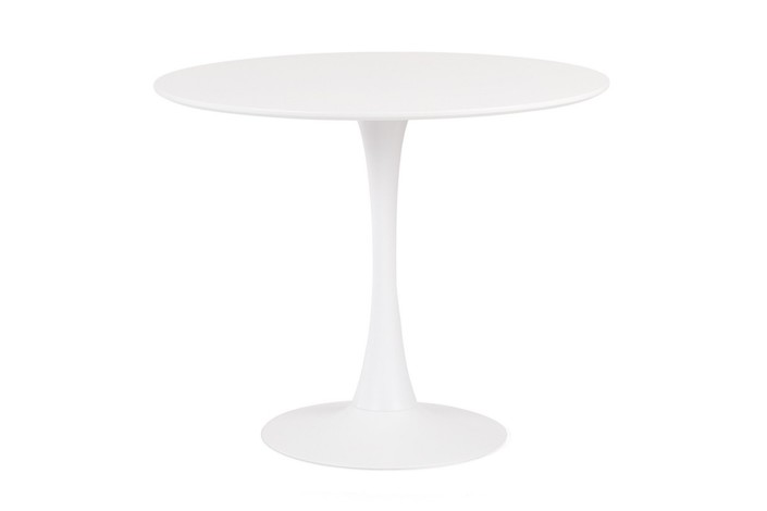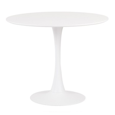 Mesa de diseño, base metálica, tapa lacada blanca, 80 cms de diámetro